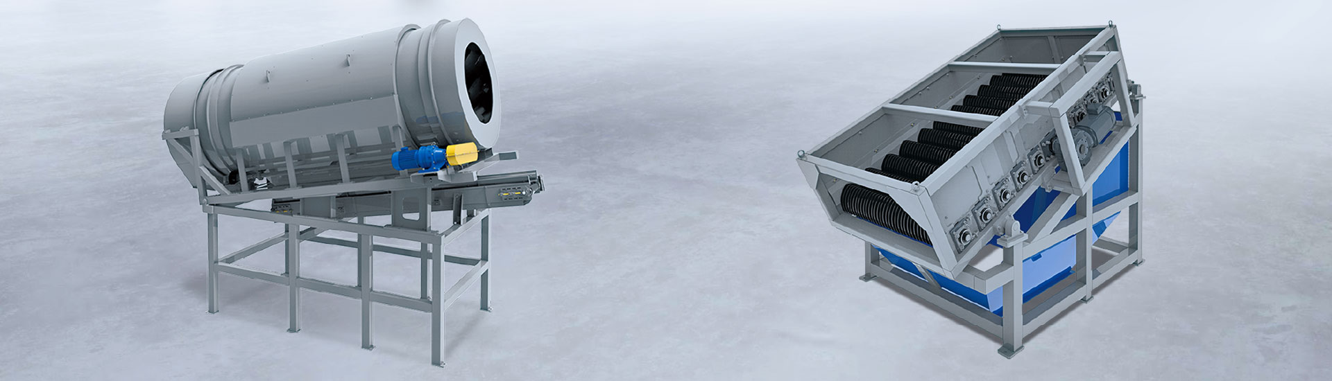 3 types of sieving machines which are dry trommel, disk screener, and dust remover are available for different materials. They have the same function to remove impurities such as sands, metals, small stones, labels in different washing sections. The disk screener is more compact than the dry trommel, it's good to be placed after de-baling and pre-washing to separate impurities. It can evenly spread PET bottles on the next process like belt conveyor and filter residual water. Dry trommel can remove caps and sands separately through multiple meshes filtrations.