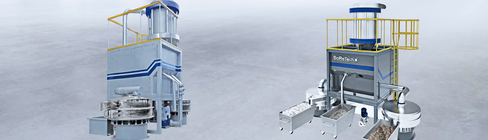 PURIFINES洗浄機は、PETボトルからクリーンなPETボトルフレークを製造する過程で生成される微粒子(総重量の2〜3%)を分離するために使用されます。濃縮塩水の作用なしに、ラベルの粉、繊維、砂が分離されます。